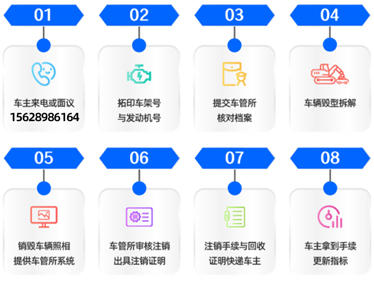 免费拖车、10-15个工作日出报废手续和注销证明只要手续齐全,随时可以办理注销。